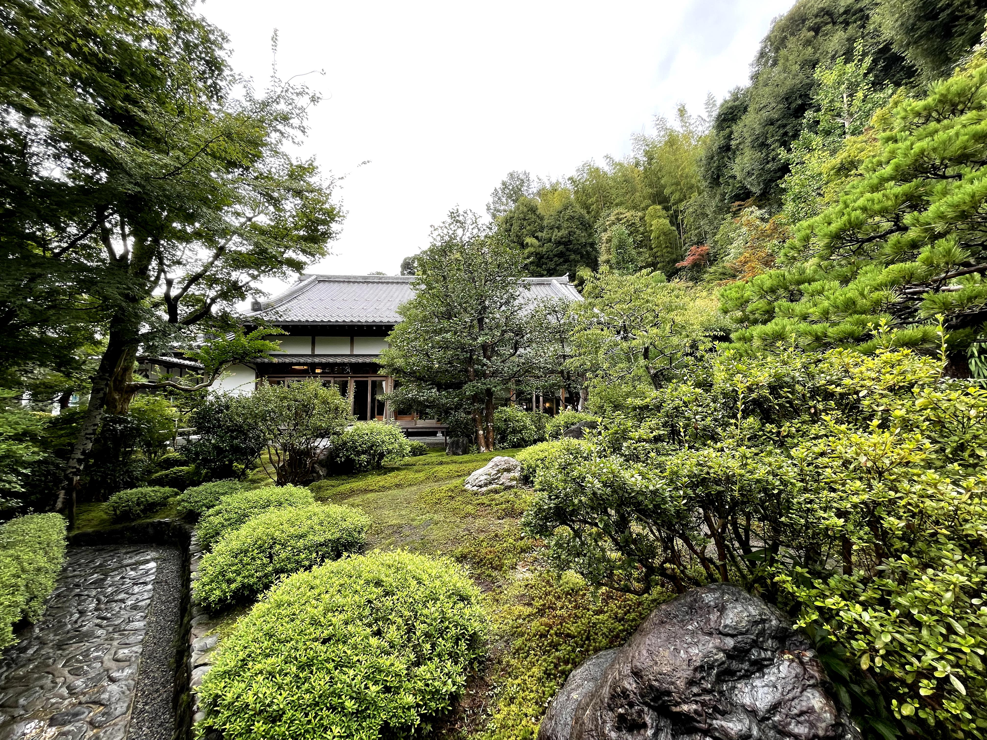 鈴虫寺の庭から見た本堂。