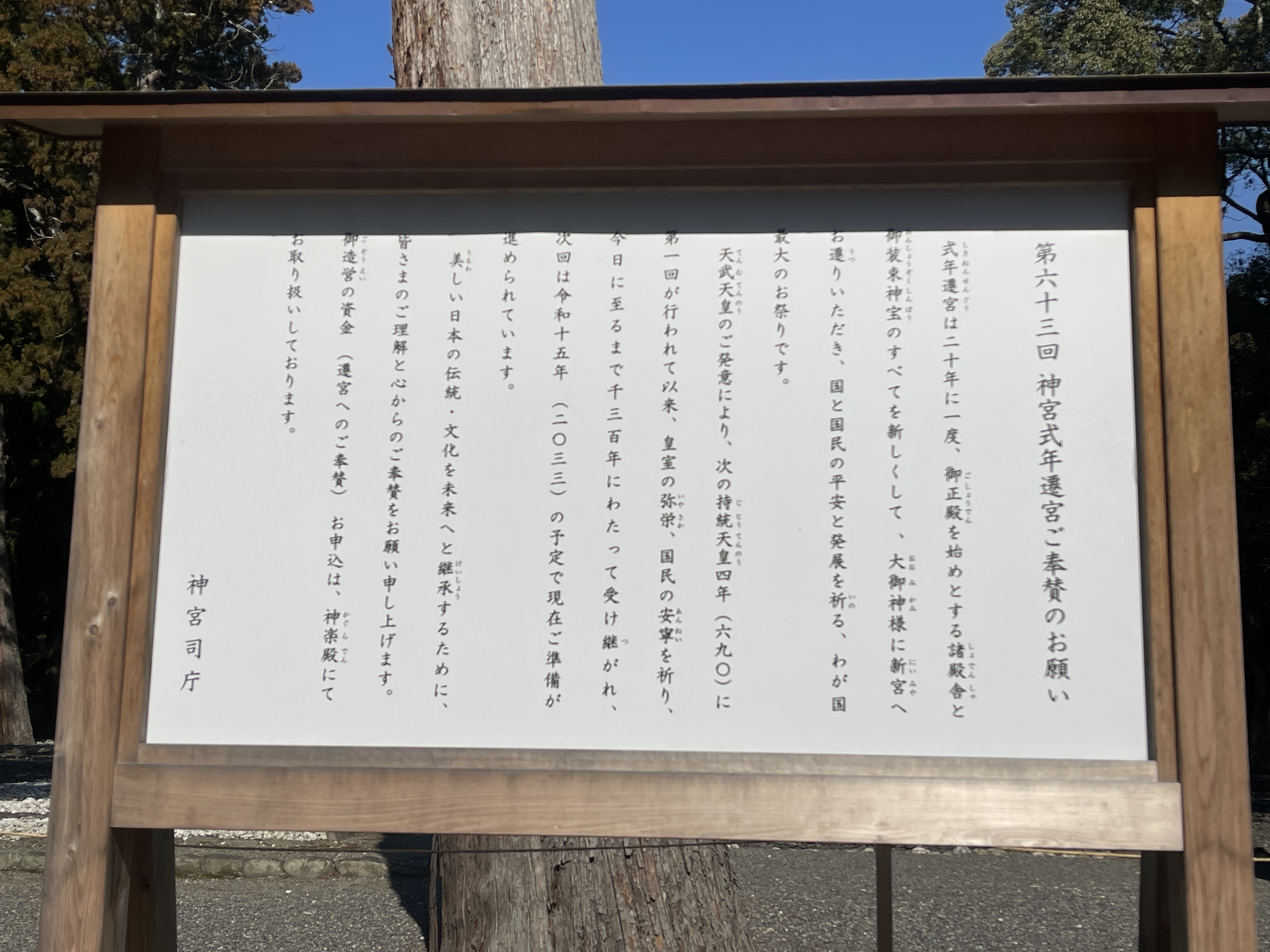 20年に一度社殿を建て替える「式年遷宮」へ奉賛(ほうさん)について