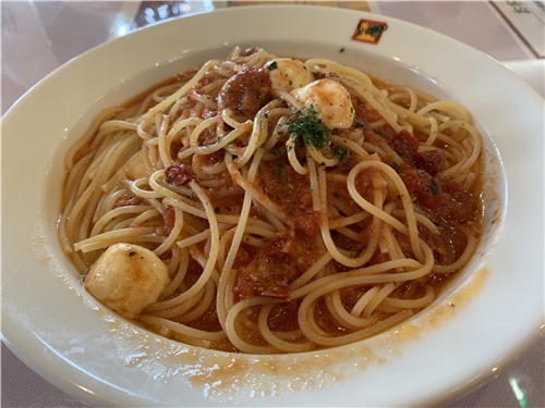モッツァレラチーズとバジルのパスタ。